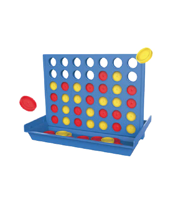 Juego de parrilla y conjunto de fichas amarillas y rojas para formar filas de 4.
